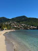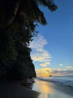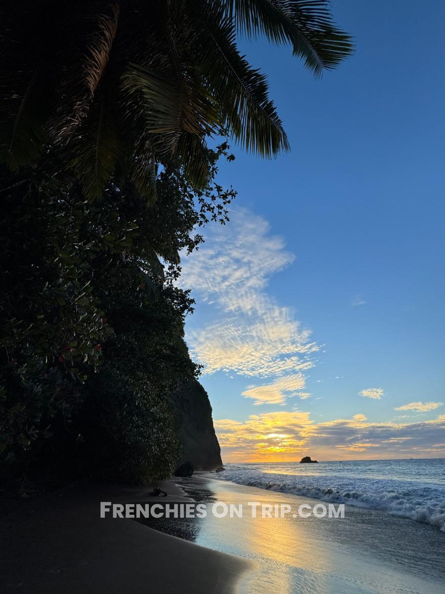 Just offshore, the Star Clipper is anchored in the bay. The tall ship gives the whole place a postcard look, but since we’re living it, it somehow feels normal. We stay there for a while watching the sun drop behind the hills, painting the whole Anse d’Arlet in warm orange tones.